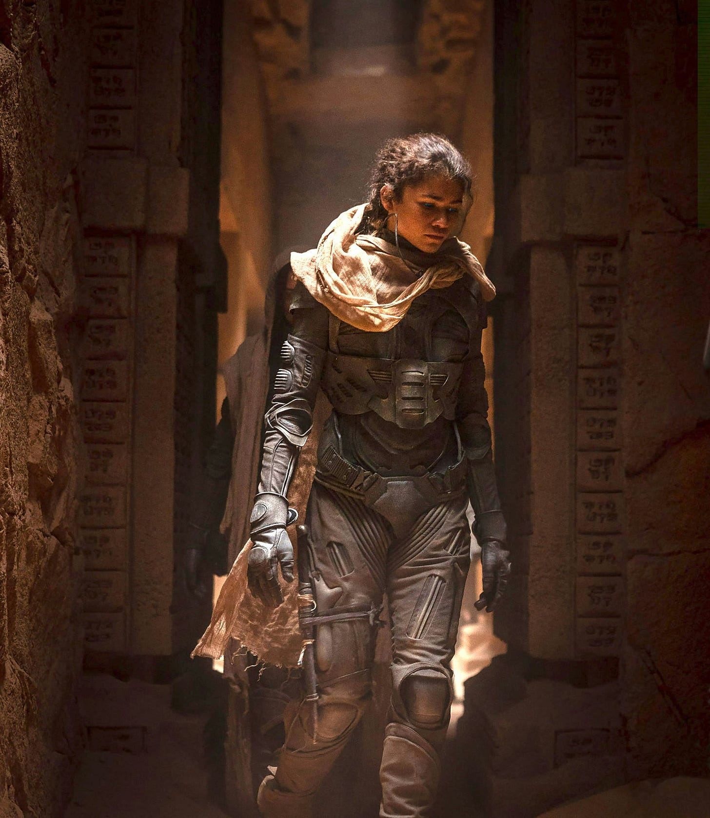 In the book, Chani is the usual kind of female supporting character, only there to encourage and support Paul. She is also white person, and tied to Paul due to having had his children. In the film, Chani’s opposition to the religious indoctrination of her people, and that Zendaya is a person of color and Paul is white, serves to highlight not just the story’s anti-colonial messaging, but to subvert the white saviour trope. This is something films like Avatar are incapable of doing, mostly because they are seemingly ignorant of how engrained the trope is in their story, due to either just being unable to understand it, or they simply don’t give a fuck. And while, much like in Star Wars, the intention here in Dune is to create an alien setting using foreign (to Western cultures) settings and cultures as a touchstone, usually the portrayals of desert-centric planets, the people who live there, and their cultures (for example), rely upon common racist ideas associated with the Middle East, all while appropriating Arabic-sounding words and names for whatever use the story may require, so having Chani be the one who provides this critical counter viewpoint is important, because she is so central to the film and so tied to its main characater.