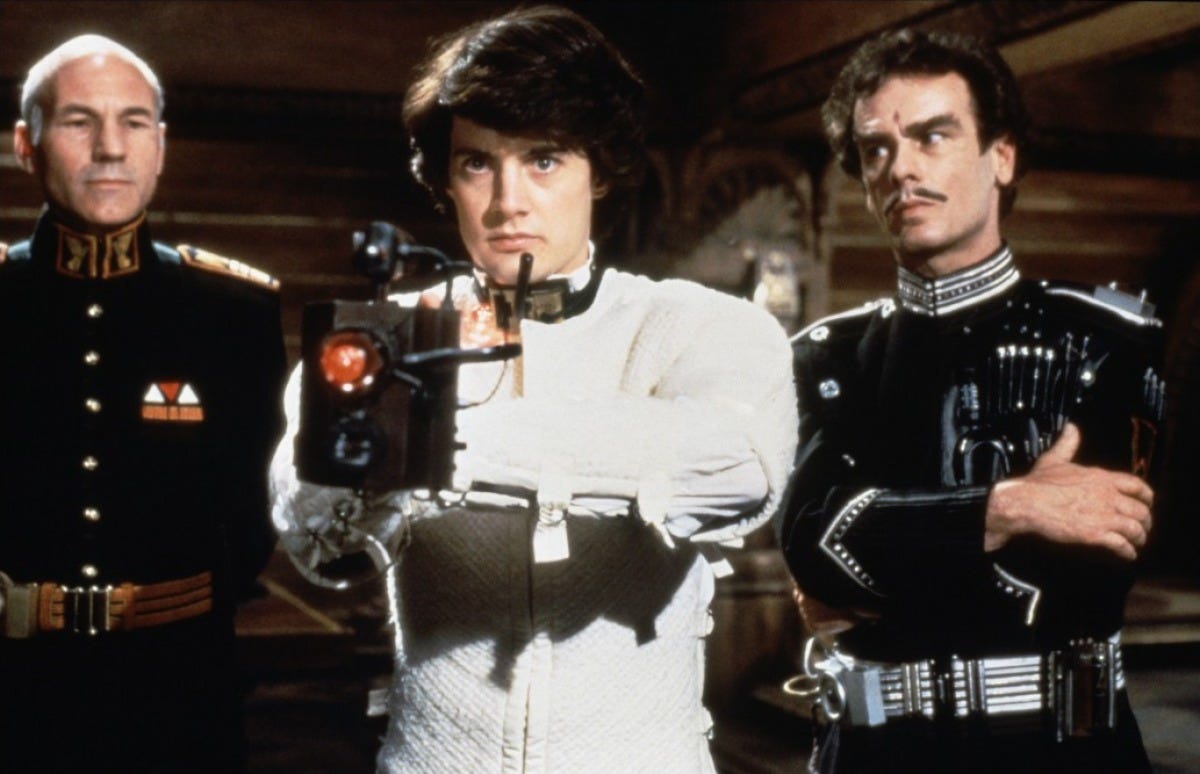 David Lynch apparently decided to make this change because he supposedly couldn’t figure out how to make the high speed fighting work on camera, but I think the truth is, at least judging by his supposed statement that he did not want to see "Kung-fu on sand dunes,” is that he actually just didn’t like the entire idea at all.